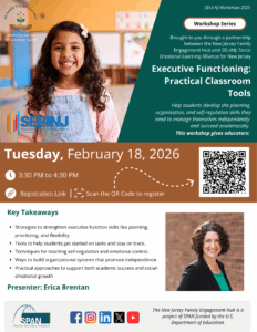The New Jersey Family Engagement Hub (NJFEH) provides technical assistance (TA) and training to the New Jersey (NJ) State educational agency (SEA) and local educational agencies (LEAs), educators, administrators, family organizations, family leaders, families, and community-based organizations (CBO) in the implementation and enhancement of systemic and effective family engagement (FE) policies, programs, and activities that lead to improvements in student development and academic achievement.